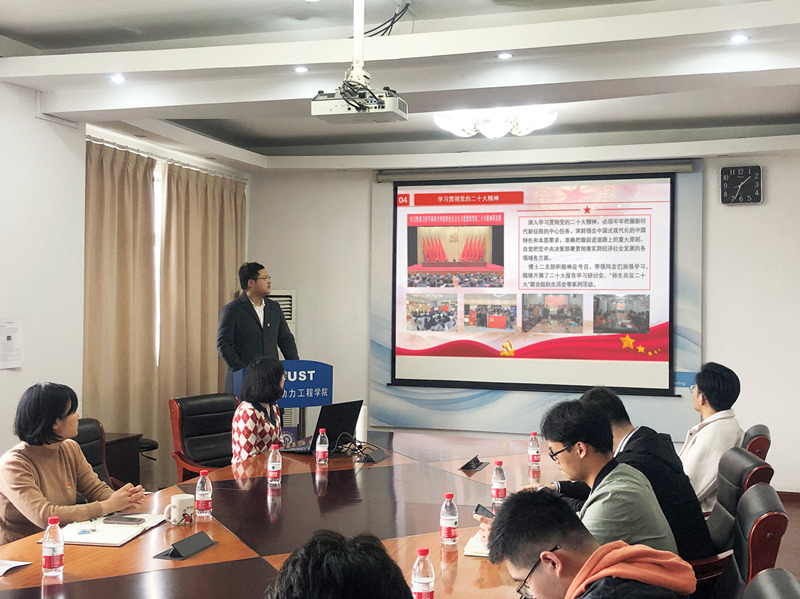 为深入学习贯彻落实党的二十大精神,3月22日下午,机械与动力工程学院博士生第二党支部在实验十七楼308会议室举行了解读“党的二十大精神”组织生活会。本次活动的主讲人为马克思主义学院徐汇校区研究生党支部的博士生王曦晨,学院党委副书记李煜佳、辅导员李喜娜、辅导员郭洪辛和5357cc拉斯维加斯研究生各党支部书记出席活动。活动由博士生第二党支部书记聂文睿主持。