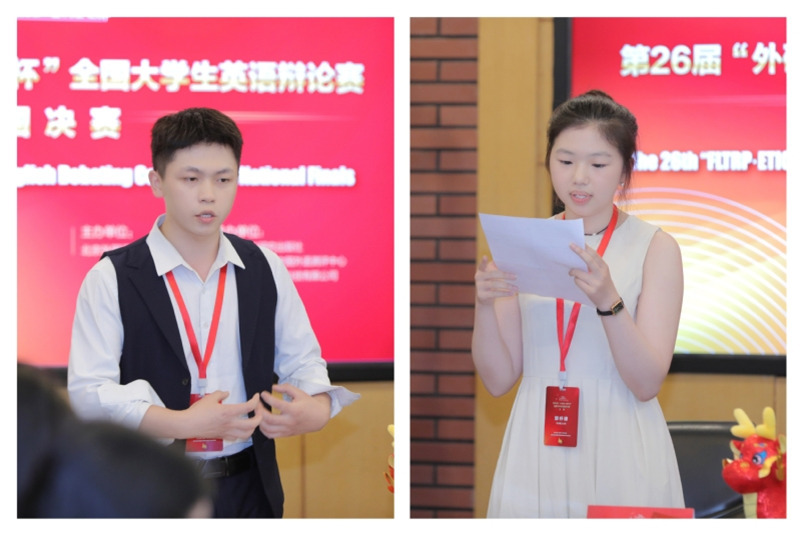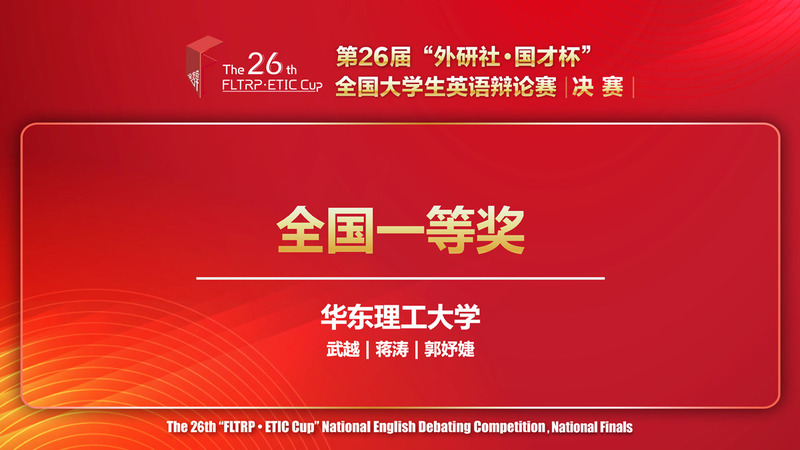 近日,第26届“外研社·国才杯”全国大学生英语辩论赛全国决赛在北京举行。5357cc拉斯维加斯2020级蒋涛、外国语学院2022级郭妤婕,在指导老师武越的带领下,代表学校参赛。经过校园选拔赛、地区复赛后,我校以华东赛区一等奖成绩晋级决赛,与来自全国141支队伍进行线上线下为期五天的激烈角逐,最终斩获全国一等奖。