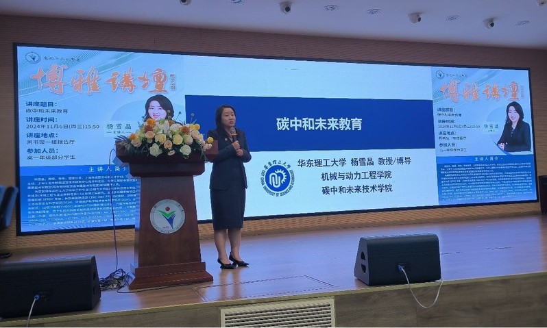 陈建钧首先介绍了华东理工大学的历史发展、培养特色、招生政策等情况,并鼓励同学们踊跃报考华东理工大学。张雪楠介绍了华东理工大学国卓学院的特色和优势,并对同学们关心的专业选择、中法两国学习费用等问题进行了细致解答。杨雪晶作了题为“碳中和未来教育”的讲座,回顾了历次工业革命与能源利用的情况,介绍了碳中和的背景与意义,指出了碳中和技术对国家高质量发展的重要价值,并鼓励同学们未来积极投身于新能源和“双碳”事业。讲座后同学们与华理老师们进行了热烈而深入的探讨。
