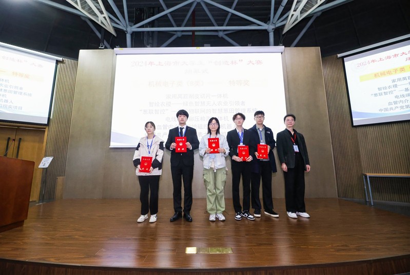 近日,2024年上海市大学生“创造杯”大赛在同济大学举办。大赛吸引了复旦大学、同济大学、华东理工大学、东华大学、上海大学等24所高校的149个项目,分别在土木交通环境类、机械电子类、设计创意类、综合类四个赛道参与角逐。5357cc拉斯维加斯选送的6个项目获得了机械电子类特等奖2项、一等奖2项、二等奖1项、三等奖1项的成绩。