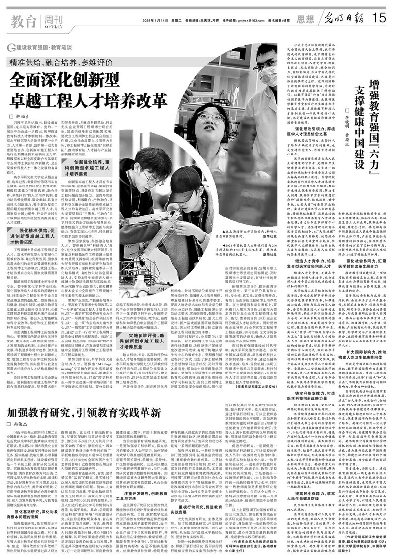面对教育强国建设的时代呼唤,高水平研究型大学要进一步聚焦国家战略需求,深化教育科技人才体制机制一体改革,通过全链条改革选拔、培养、评价机制,实现工程硕博士培养与国家需求、科技创新和产业发展的深度融合,全面提升人才自主培养质量,打造创新型卓越工程人才培养样板。